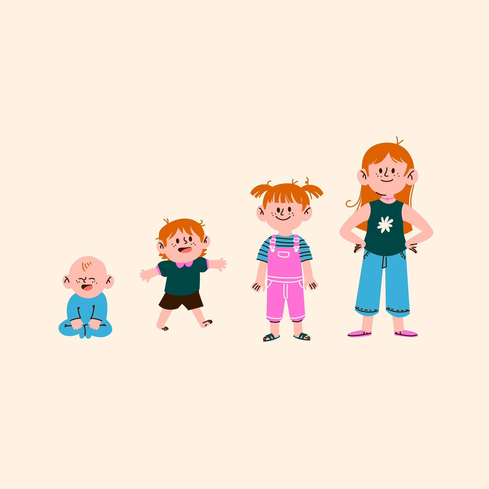 - Βρέφη (0-2 χρόνια): Μετά τη γέννηση, το βρέφος αντιμετωπίζει την πρώτη προσαρμογή στον έξω κόσμο. Οι γονείς παρέχουν την απαραίτητη φροντίδα, συμπεριλαμβανομένης της τροφοδοσίας και της αγάπης. Κατά το πρώτο έτος, το βρέφος αναπτύσσει τις βασικές κινητικές δεξιότητες, όπως την ικανότητα να σηκώνει το κεφάλι, να κάθεται, να γυρίζει από τη μία πλευρά στην άλλη και, στη συνέχεια, να περπατά. Στο πρώτο έτος, το βρέφος επιτυγχάνει σημαντικό αναπτυξιακό ορόσημο, όπως το πρώτο χαμόγελο, η πρώτη λέξη, η καθιέρωση της επικοινωνίας με τους γονείς και η αναγνώριση ανθρώπων και αντικειμένων. Η διατροφή είναι κρίσιμη κατά τη διάρκεια της πρώτης χρονιάς του βρέφους, καθώς η θηλαστική τροφοδοσία με μητρικό γάλα ή η τροφοδοσία με βρεφικό γάλα είναι σημαντική για την υγεία και την ανάπτυξή του. Τέλος οι συχνές ιατρικές επισκέψεις από τον παιδίατρο είναι σημαντικοί για την παρακολούθηση της υγείας του βρέφους και τον εμβολιασμό του.